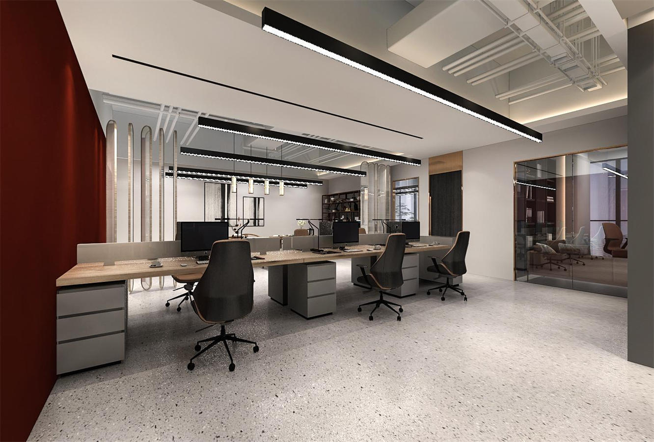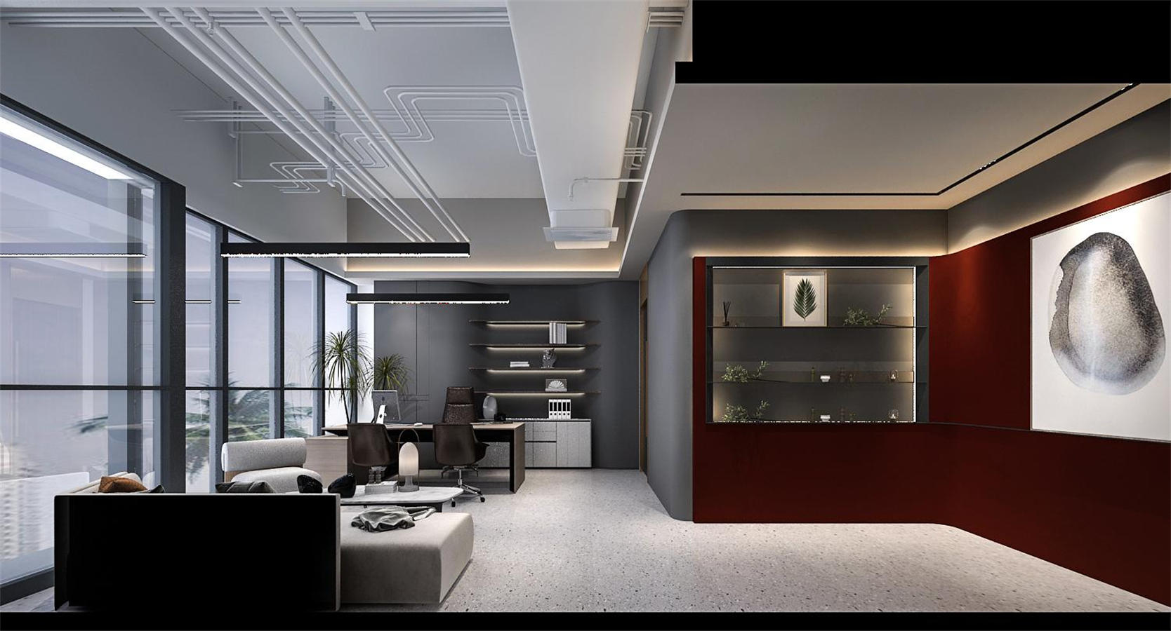 設計理念:本項目設計融合了簡潔、功能性和舒適感,旨在為員工創造一個高效且愉悅的工作環境。空間布局注重開放性和靈活性,長條形的辦公桌既可以容納多人同時工作,又保持了相互間的溝通與協作。黑、白、灰的基調中,紅色(se)的加入為原本(ben)單調的空間增添了(le)一抹亮色(se),增強了視覺上的層次感,同時也激(ji)發(fa)了員工的活力(li)和創造力(li)。而透明玻璃的使用,確保了空間的通透性和私密性的平衡。整體而言,這個設計旨在創造一個既符合現代辦公需求,又能反映企業形象和文化的辦公空間。